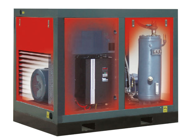 Pt變頻系列空氣壓縮機是利用變頻器的無級調(diào)速特點,通過控制器或變頻器內(nèi)部的PID調(diào)節(jié)器,能平緩啟動螺桿空壓機,改善電機的啟動和運行方式。